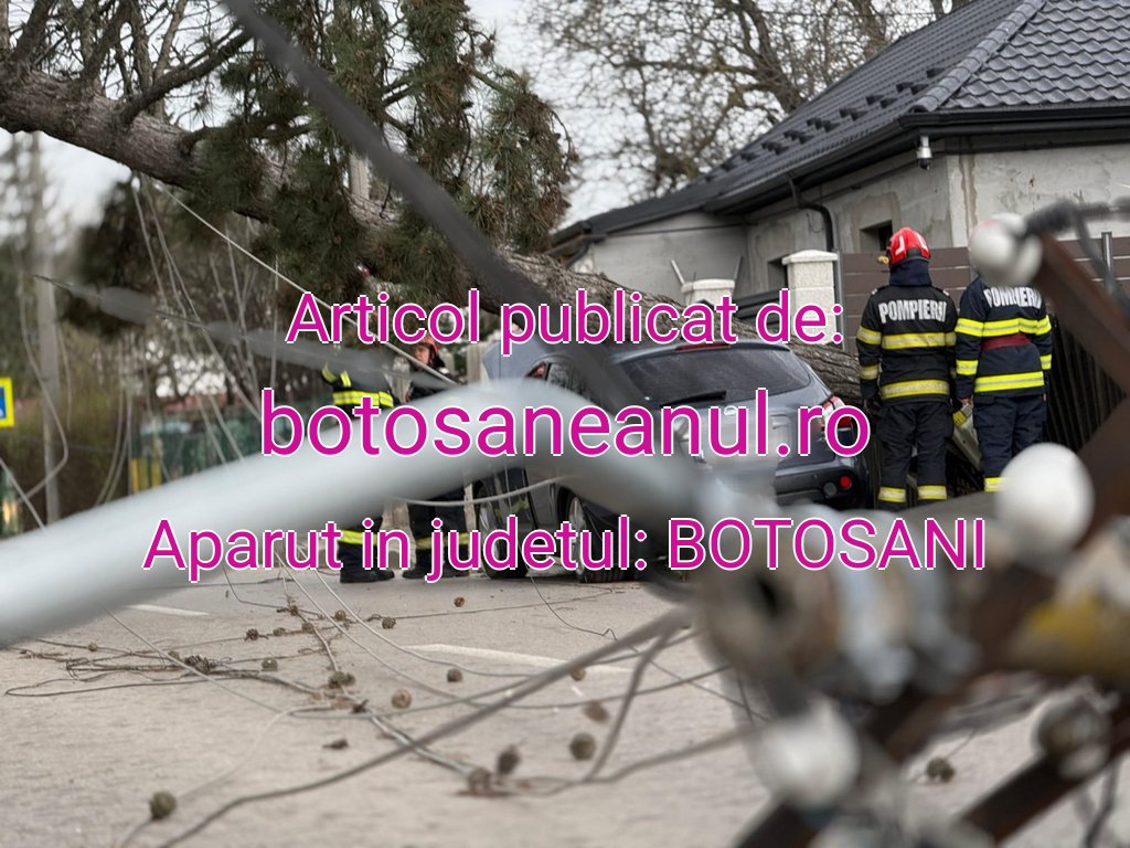 Arborele a căzut peste o mașină în urmă cu puțin timp. La fața locului au ajuns pompierii, dar și polițiștii.