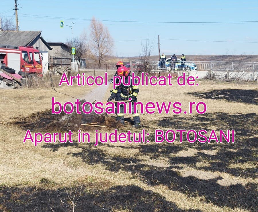 Două case din localitatea Cerchejeni au fost în pericol, sâmbătă, din cauza unui incendiu de vegetație uscată. Pompierii de la Detașamentul Botoșani au acționat rapid și au stins incendiul înainte ca acesta să se extindă.