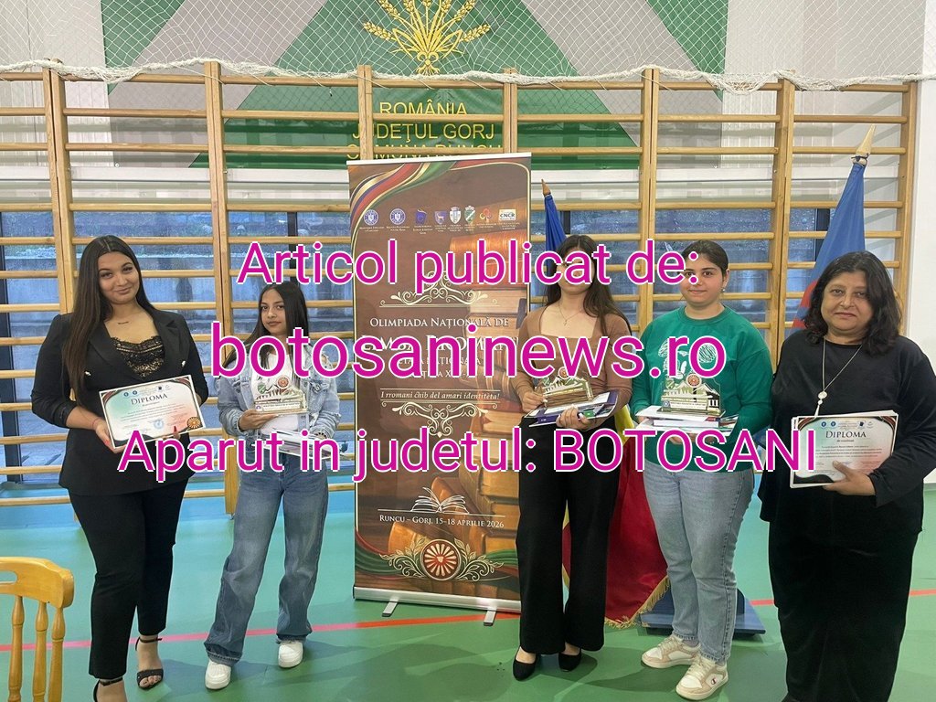 La Olimpiada Națională de Limba și Literatura Rromani, desfășurată la Runcu, județul Gorj, în perioada 15-18 aprilie 2026, au participat 4 eleve din județul Botoșani , însoțite de prof. Borcoi Liliana: