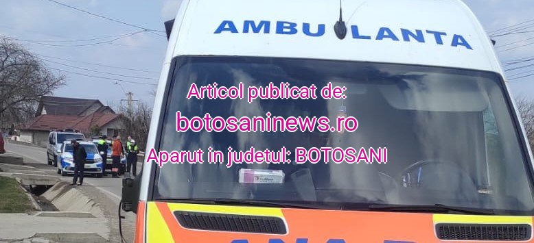 Șoferul ambulanței cu numere de Suceava nu a observat-o pe femeia în vârstă de 39 de ani și a acroșat-o cu oglinda din dreapta. În urma, botoșăneanca s-a dezechilibrat și a căzut în șanț, fiind rănită.