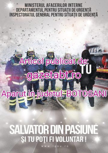 Inspectoratul pentru Situații de Urgență „Nicolae Iorga” al Județului Botoșani organizează o nouă etapă de recrutare a persoanelor care doresc să urmeze cursurile în cadrul Programului național „Salvator din Pasiune”.