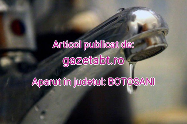 S.C. Nova Apaserv S.A. Botoșani informează utilizatorii din municipiul Dorohoi că, pentru remedierea unei avarii apărute la rețeaua de alimentare cu apă de pe strada Alexandru Ioan Cuza, se va întrerupe furnizarea apei potabile în data de12 februarie 2026, în intervalul orar 08