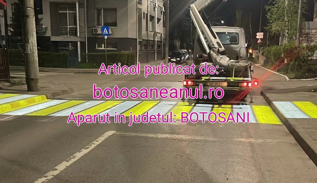 Pe străzile din municipiul Botoșani se testează un sistem modern prin care trecerile pentru pietoni sunt proiectate cu laser direct pe asfalt.